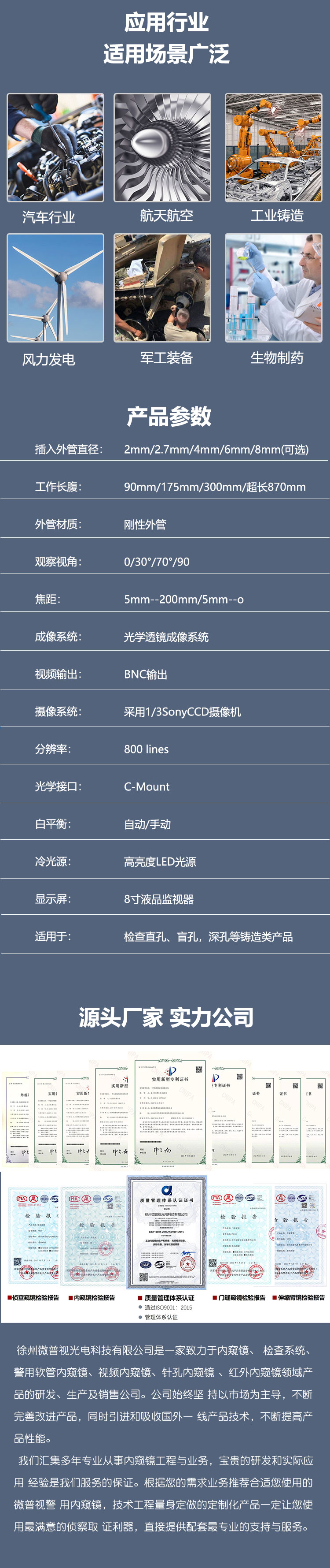 用途 | 检查直孔、盲孔,深孔等铸造类产品 | ||