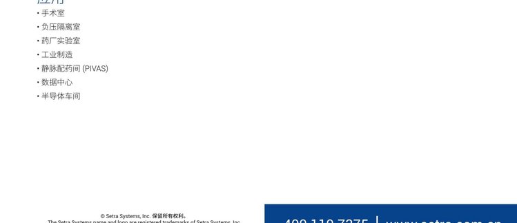应用场合 | 手术室、负压隔离室、药厂、实验室、工业制造、静脉配药间(PVAS)、数据中心、半导体车间 | ||