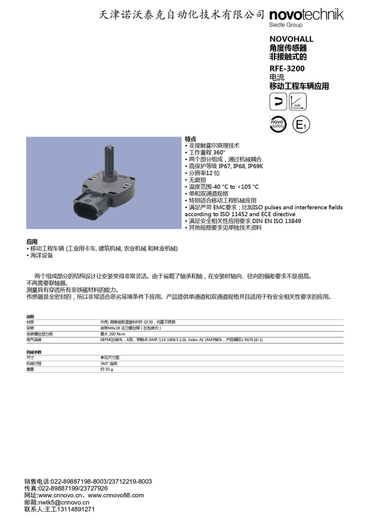 诺沃泰克塑胶切割车辆NOVOHALL角度传感器非接触式的RFE-3200电流