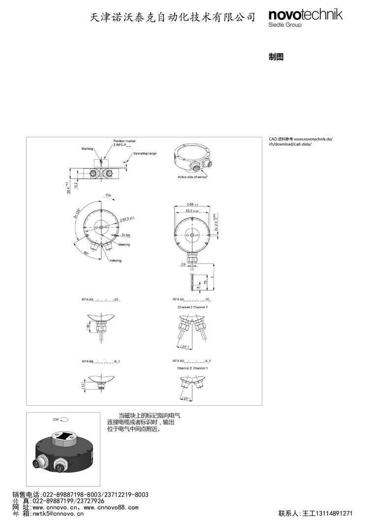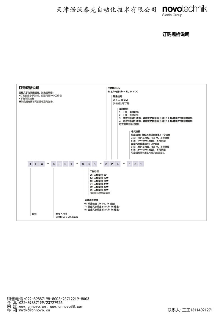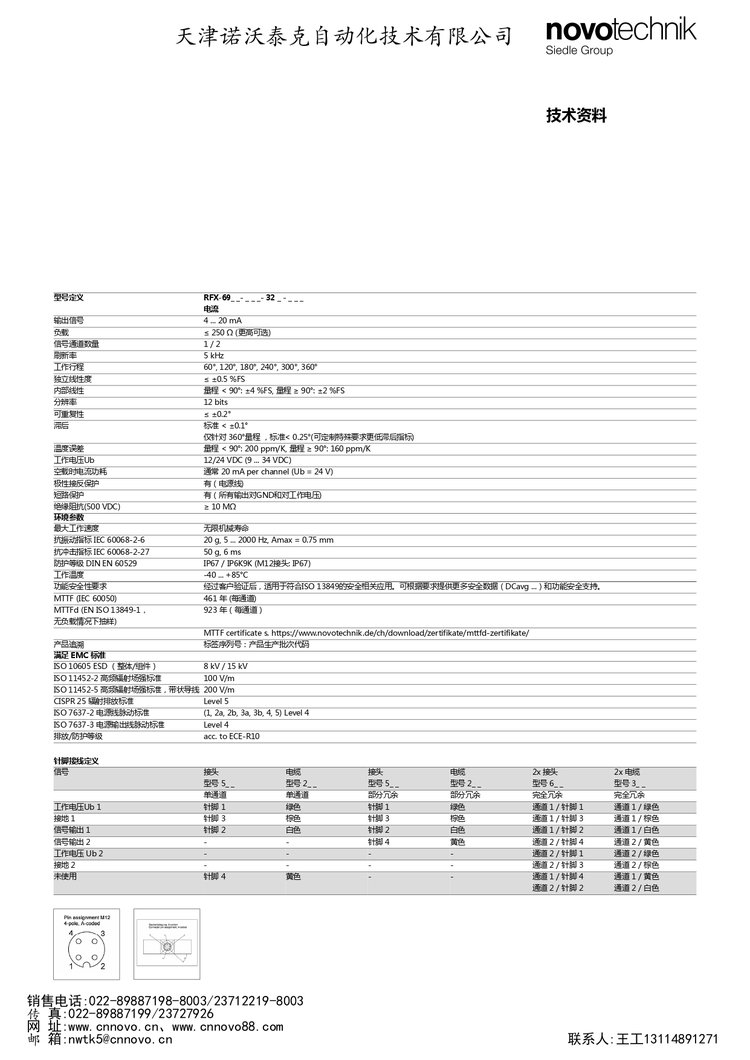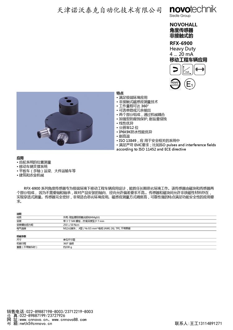 诺沃泰克塑胶切割车辆RFX-69004-20mA角度传感器非接触式