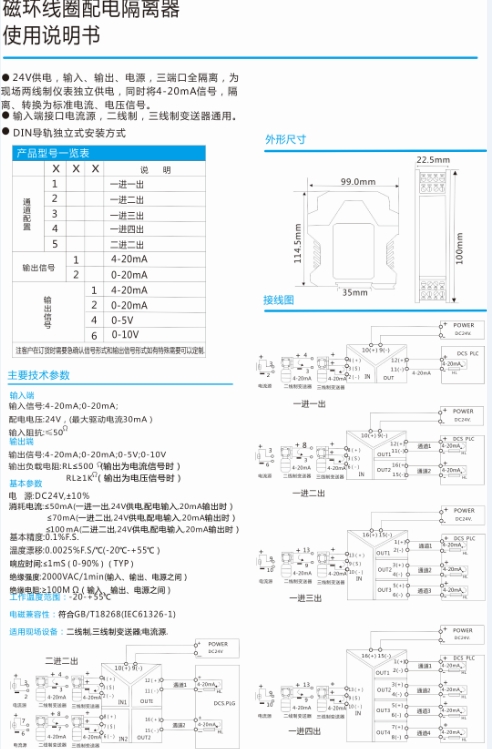 磁环线圈信号隔离器高精度低温漂4-20MA电流电压隔离器0-5V0-10V转换器