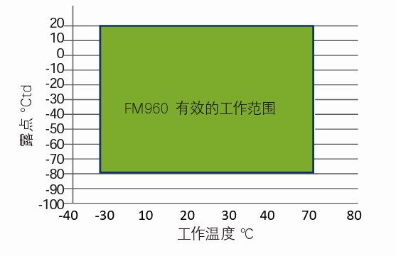 FM960响应快速,安装快捷的湿度测量系统,具有完整的露点测量范围-80 至 +20 °C dp,覆盖了很多湿度测量应用。