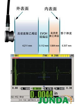 ? 使用频率范围为2.25 MHz~30 MHz的单晶探头,高分辨率软件选项可进行分辨率为0.001毫米的厚度测量。