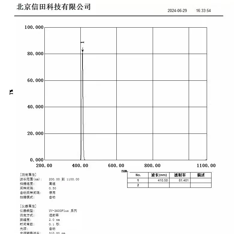 品名:410nm紫外窄带滤光片