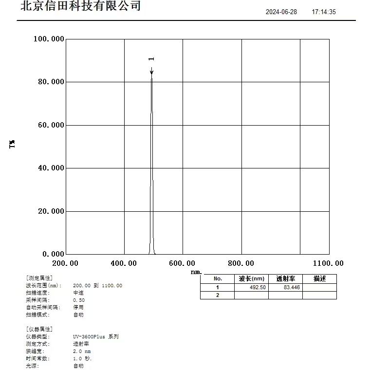 中心波长:492+/-2nm