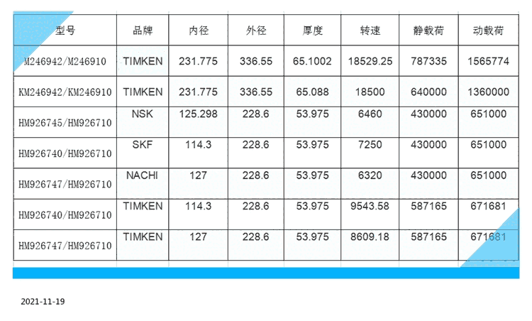 圆锥滚子轴承主要承受以径向为主的径、轴向联合载荷。轴承承载能力取决于外圈的滚道角度,角度越大承载能力越大。该类轴承属分离型轴承,根据轴承中滚动体的列数分为单列、双列和四列圆锥滚子轴承。单列圆锥滚子轴承游隙需用户在安装时调整;双列和四列圆锥滚子轴承游隙已在产品出厂时依据用户要求给定,不须用户调整