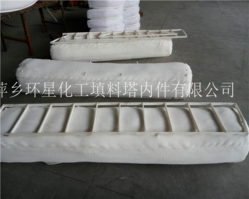 塑料丝网除沫器主要是由丝网、丝网格栅组成丝网块和固定丝网块的支承装置构成,丝网为各种材质的气液过滤网,气液过滤网是由金属丝或非金属丝组成。气液过滤网的非金属丝由多股非金属纤维捻制而成,亦可为单股非金属丝。该丝网除沫器不但能滤除悬浮于气流中的较大液沫,而且能滤除较小和微小液沫,广泛应用于化工、石油、塔器制造、压力容器等行业中的气液分离装置中。