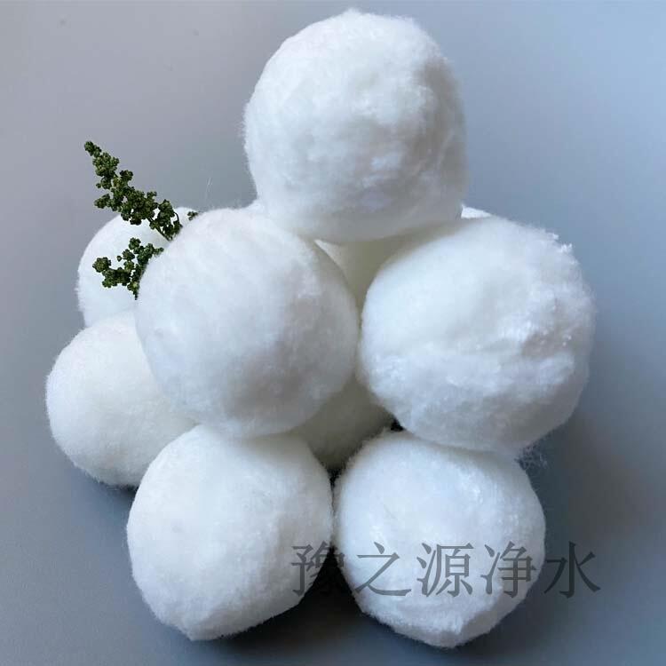 纤维球是由纤维丝扎结而成的球形滤料,它与传统的钢性滤料相比,具有弹性效果好,不上浮水面,空隙大,工作周期长,水头损失小等优点。在过滤过程中,滤层空隙沿水流方向逐渐变小,比较符合理想滤料由上大下小的孔隙率分布,从而形成了滤速快,截污容量大,过滤效果好,可再生反复使用,不必全部更换,省时省力等优点。