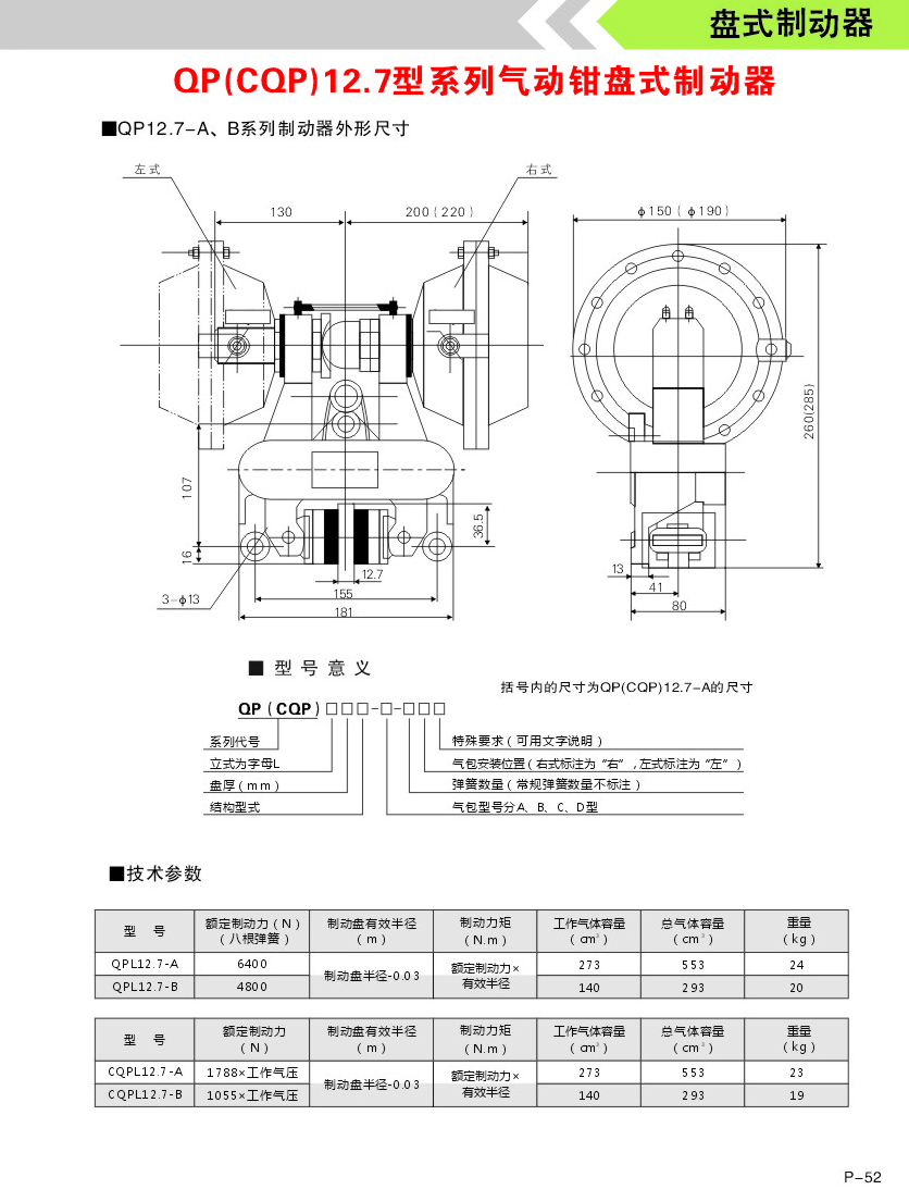 QP,CQP系列气动钳盘式制动器。