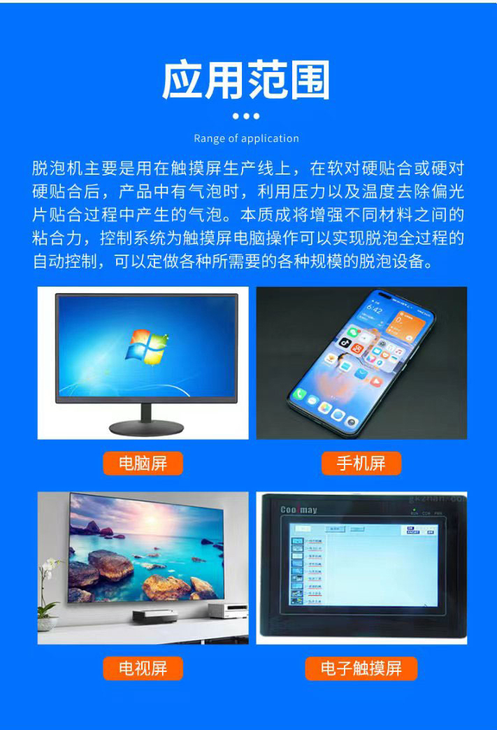 用途范围 | 各种液晶屏消泡除泡 | ||