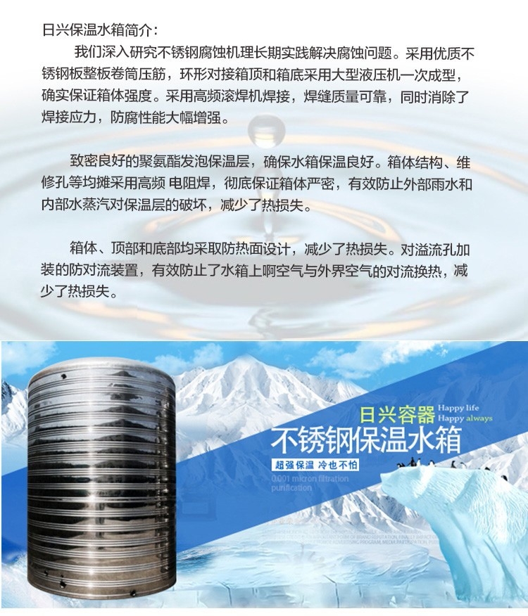 致密良好的聚氨酯发泡保温层,确保水箱保温良好,箱体结构、维修孔等均摊采用高频电阻焊,彻底保证箱体严密,有效防止外部雨水和内部水蒸气对保温层的破坏,减少了热损失。