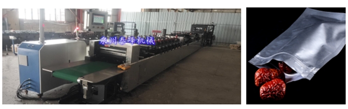 TF-600BDLL 三边封、贴底站立袋、连底站立袋、拉链制袋机由三边封制袋机、双拉链热封部件、双站立贴底部件、对折放料架与多媒体工业控制机计算机加交流数字伺服等系统组成。