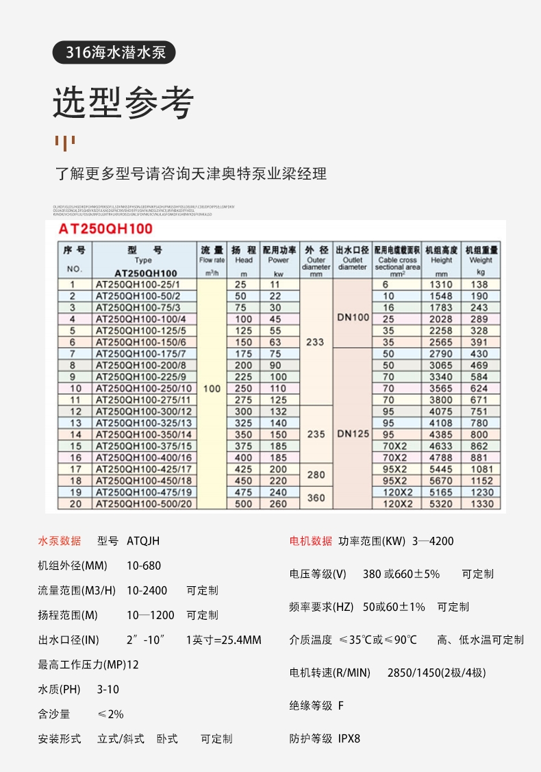 产品名称:AT150、200、250、300、350、400QJR系列热水潜水泵