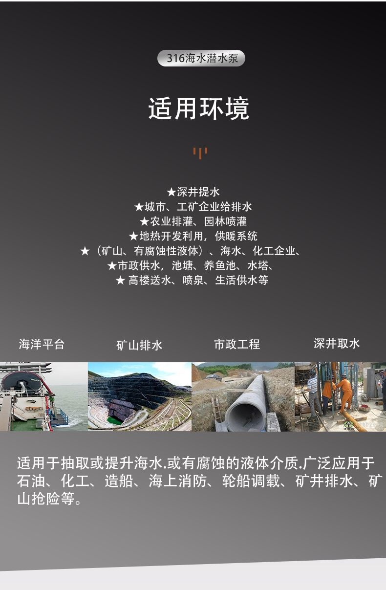 适用于高温废水回收利用。如:锅炉高温废水,输水管路高温废水,散热管路高温废水循环,电力抢修部门,抽排供热管路废水,工厂冷却水循环等等。