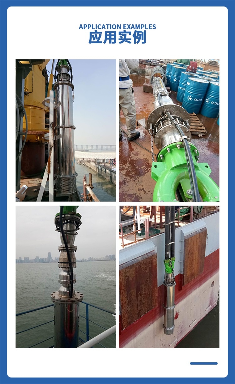 4、安装方式及位置:泵应立式使用、吸入口应浸入液面下,通常距海底不少于0.5米。电泵机组潜水深度不超过70米。
