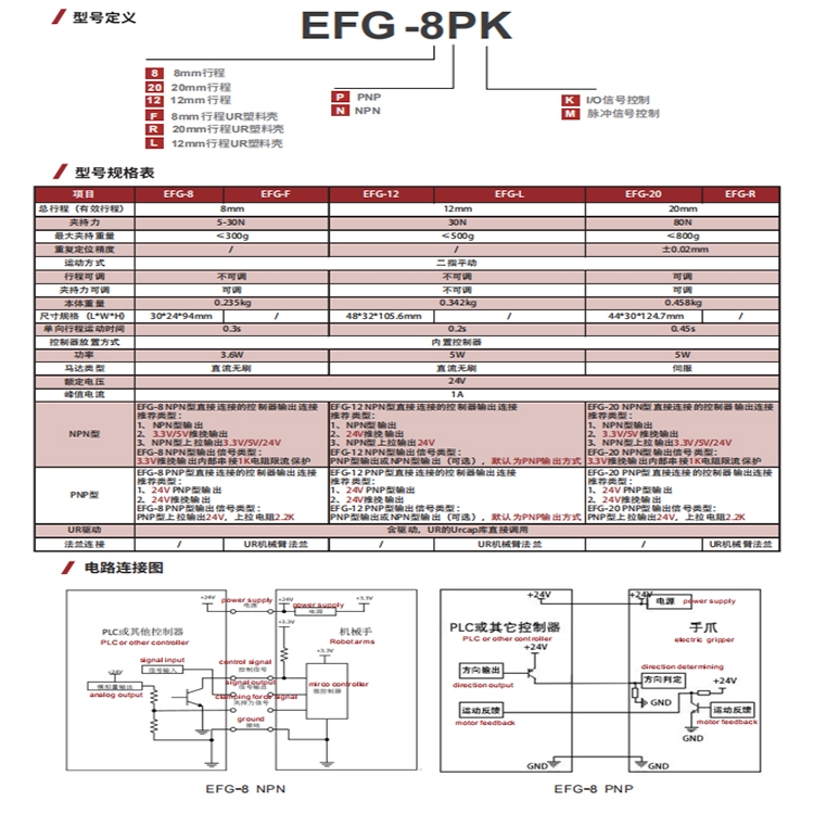 电动夹爪是内部集成伺服系统的小型电动夹爪系列。它能够替代空压机+过滤器+电磁阀+节流阀+气动夹爪。