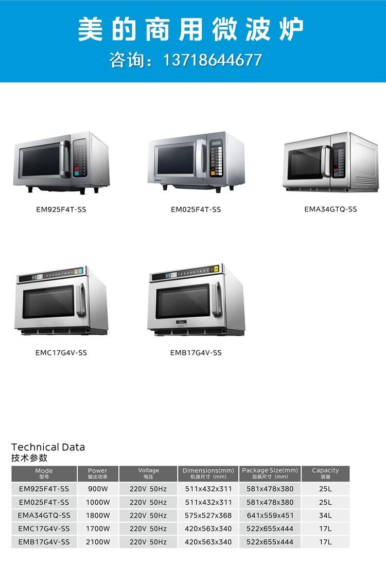 美的微波炉EMB17G4V-SS商用大容量快速加热高铁盒饭加热