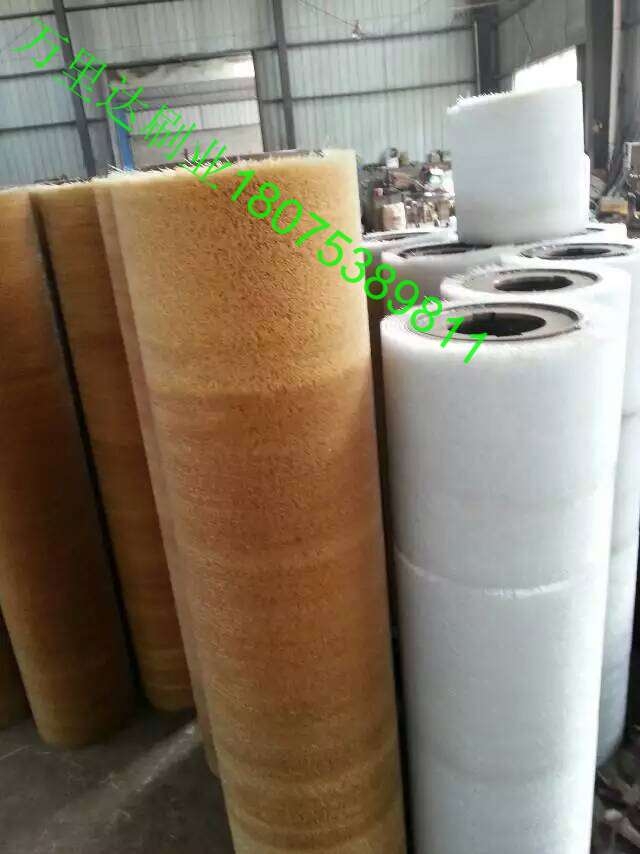 钢板酸洗毛刷辊多用于钢板 ,铜基板,镀锌板,铝板表面处理,刷丝可选用波纹尼龙丝(含磨料刷丝),特殊要求的可选用波纹不锈钢丝,做法采用弹簧环绕的方式制作工艺为佳。这样做出来的毛刷辊表面丝质密度高,且不掉毛,耐磨、耐用,而且在原刷辊刷丝磨坏后,可方便拆卸环绕而成的弹簧刷,这样中间的轴承体可再次利用,大大节省了成本。刷辊大小按配套酸洗机械来定,一般尼龙酸洗毛刷辊用于除油污、除锈、抛光、清扫等;不锈钢丝毛刷辊用于钢板 表面去锈、去毛刺或特殊处理成条纹基理效果等。