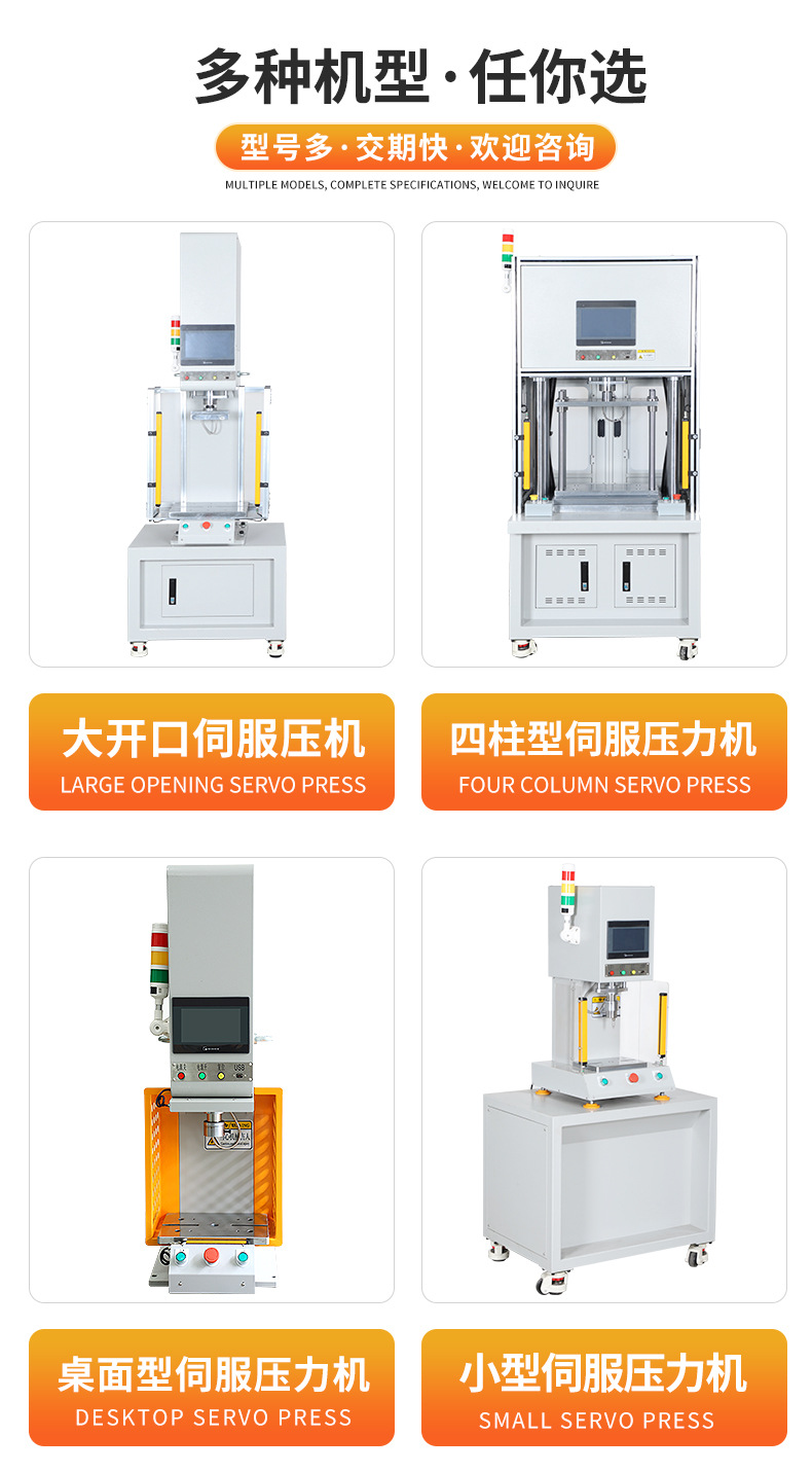数控液压压装机适用于各种材料的冲孔、压印、整形、铆接、弯曲、剪切、拉伸和各种小型零部件的压装、装配; 电子、家电、印刷、包装、塑胶、家具、汽车行业(如马达组立,轴心、轴承压入,变压器成型,电器开关组立,电子、计算机零件组立,铆合。相框成型,塑胶成型,切断,钢管弯曲成型等)