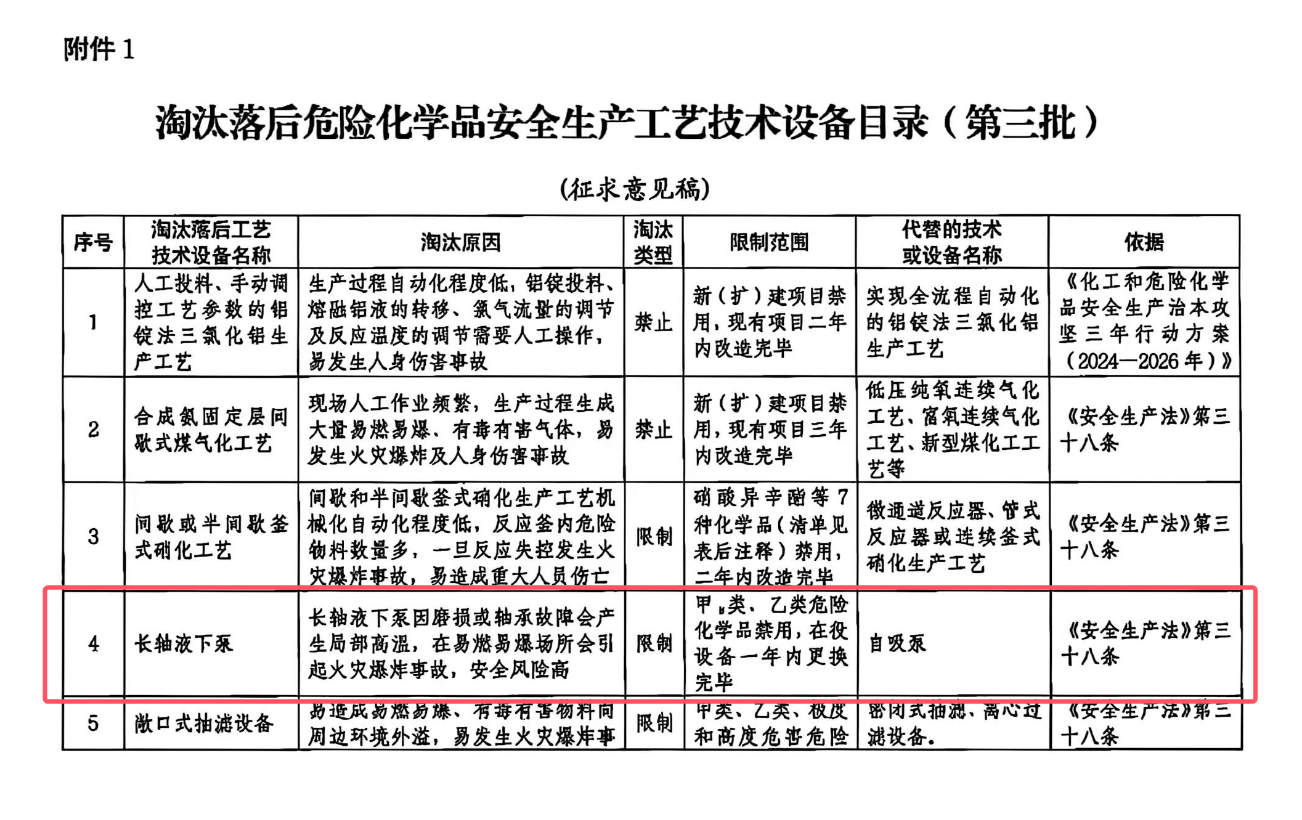 应急部征求意见-----淘汰落后危险化学品安全生产工艺技术设备目录(第三批)