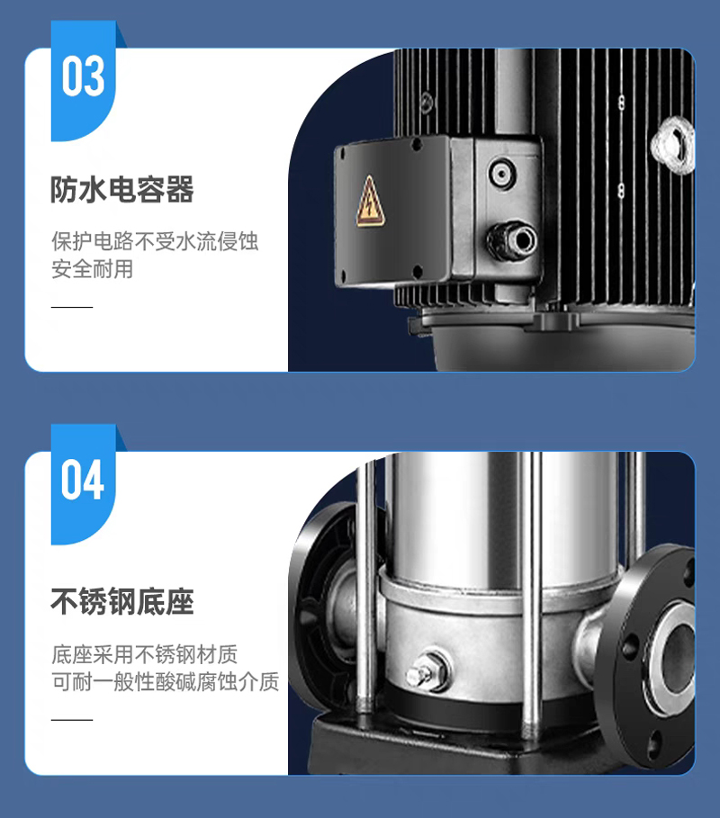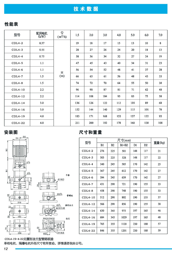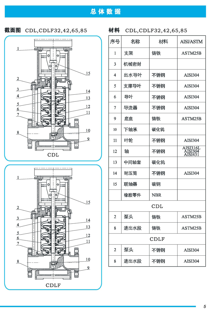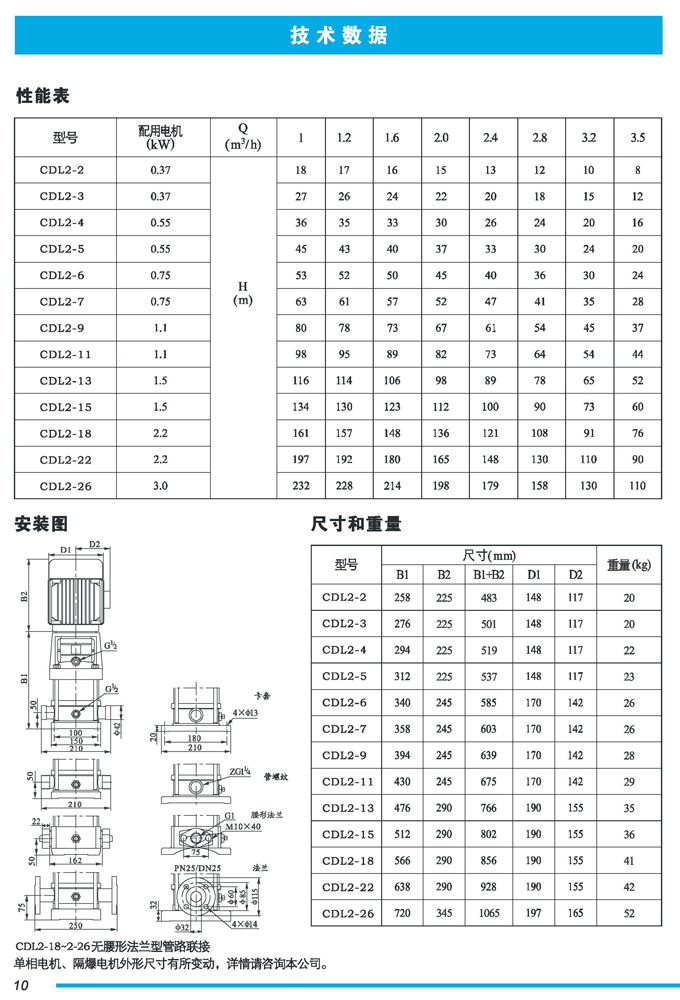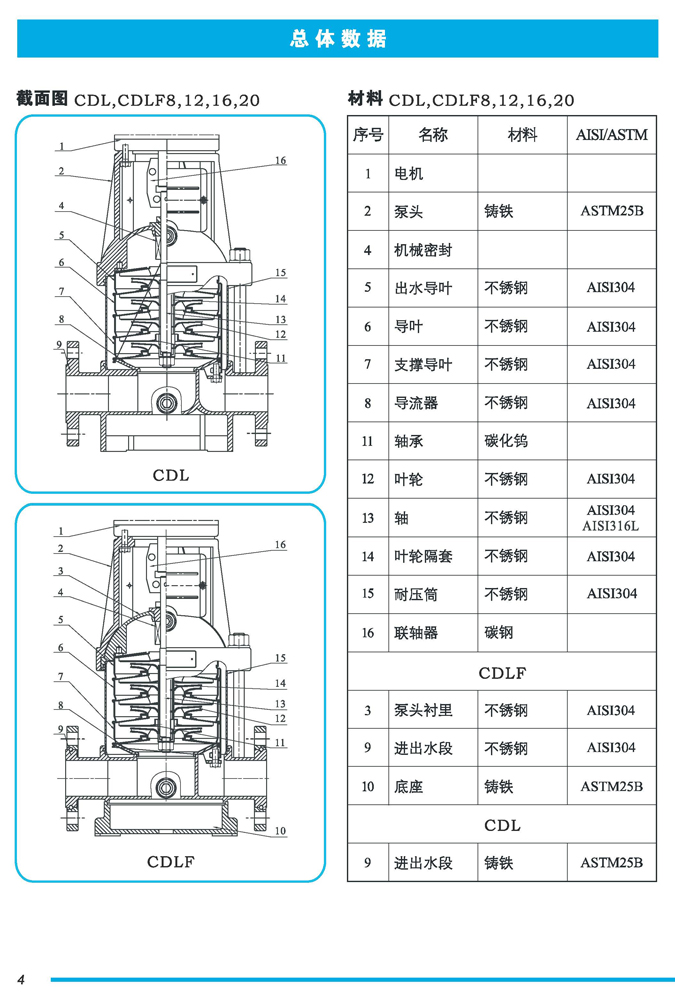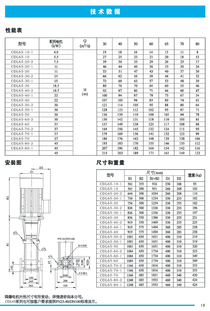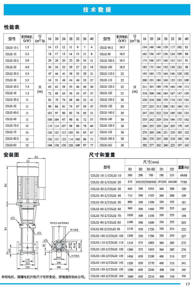 CDL|CDLF不锈钢立式多级离心泵是一种多功能产品,可以输送从清水到工业液体的各种不同介质,适用于不同温度、流量和压力范围,CDL型适用于伍腐蚀性液体,CDLF型适用于轻度腐蚀性液体。