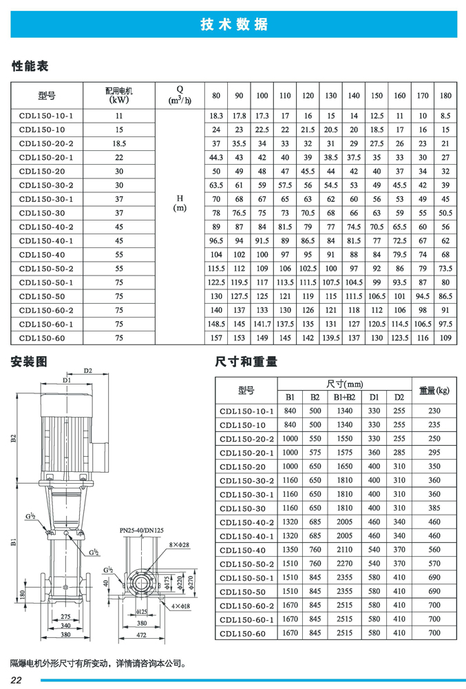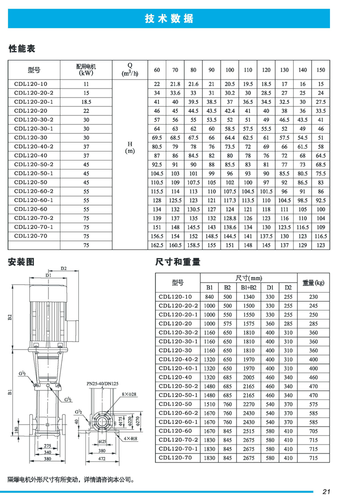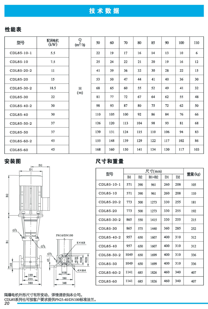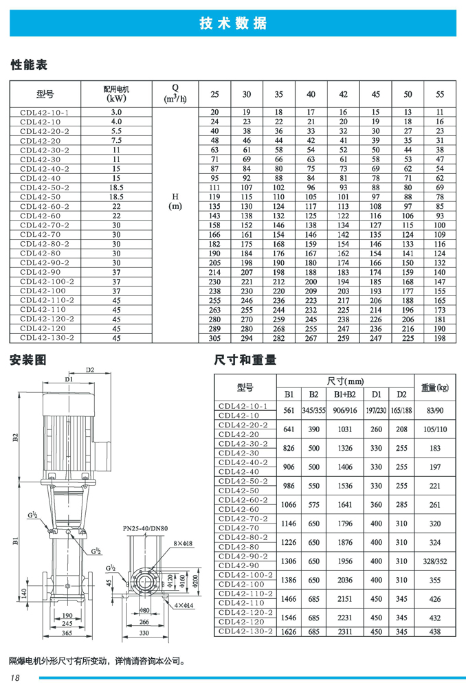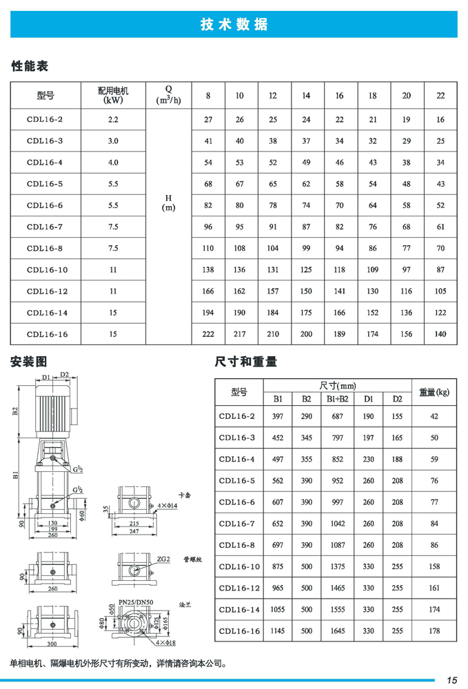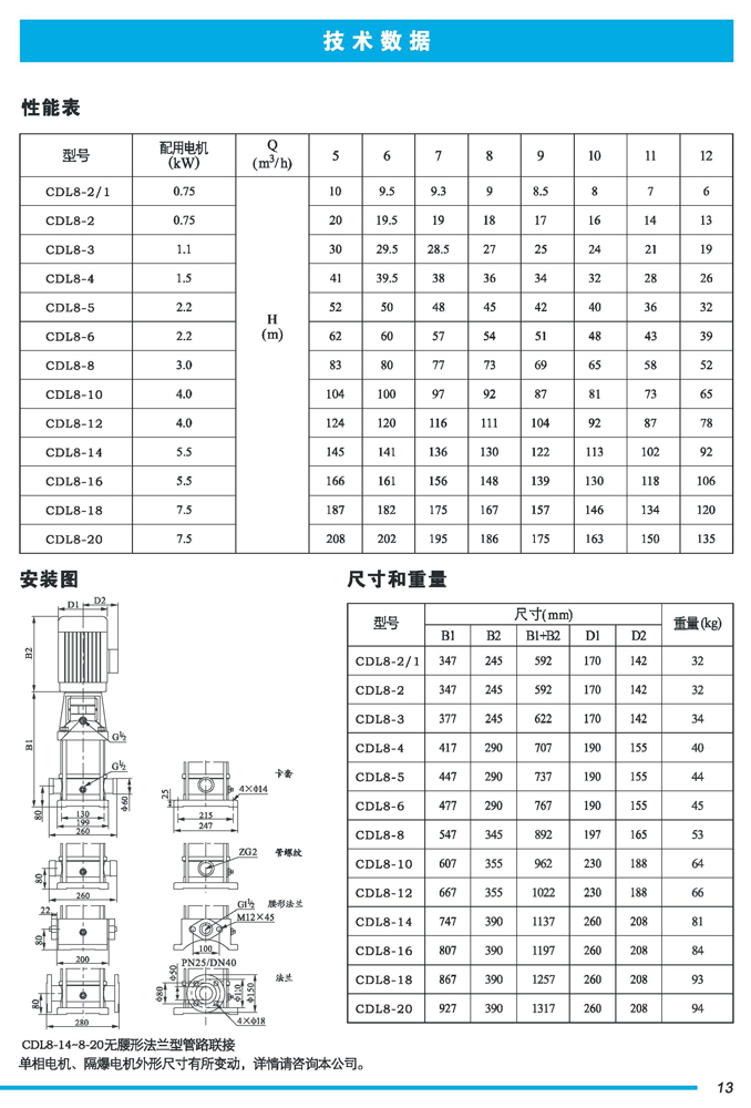 CDL|CDLF不锈钢立式多级离心泵是一种多功能产品,可以输送从清水到工业液体的各种不同介质,适用于不同温度、流量和压力范围,CDL型适用于伍腐蚀性液体,CDLF型适用于轻度腐蚀性液体。
