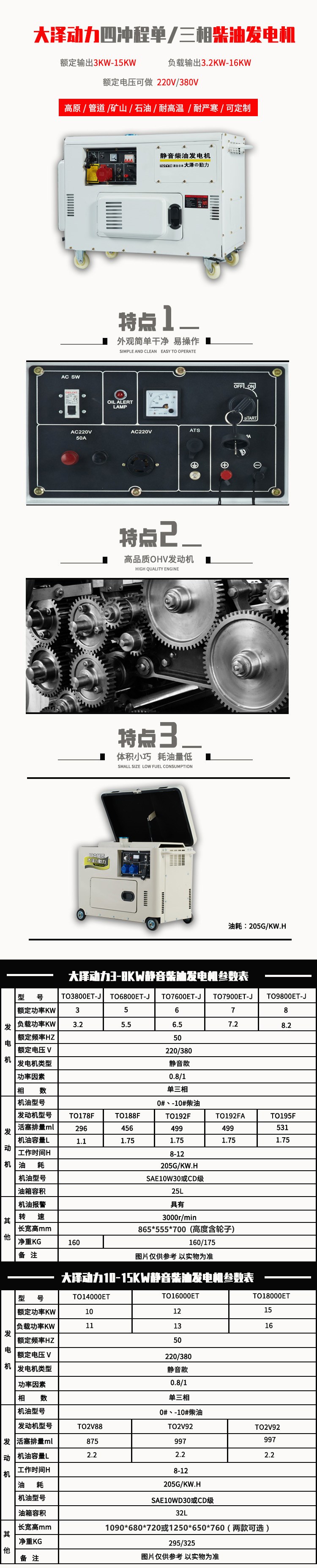 智能柴油15千瓦发电机参数如下;