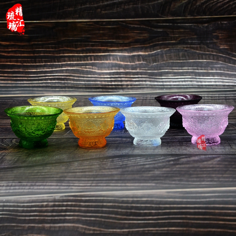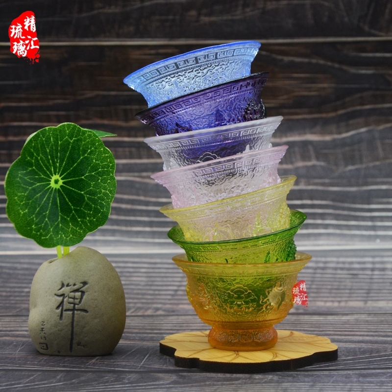 八吉祥琉璃供杯 古法琉璃圣水杯 广州深圳琉璃佛具批发