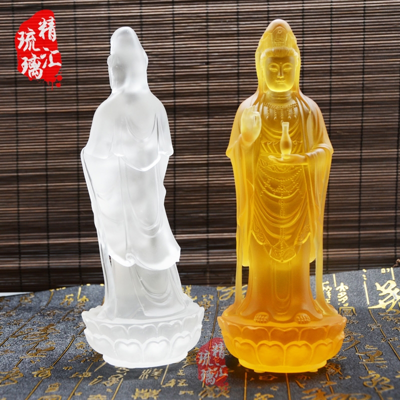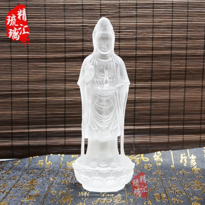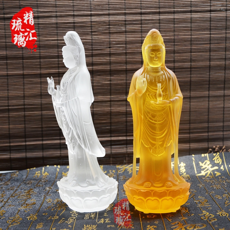 世是世间的意思,不仅仅包含我们这个世间,还包含了尽虚空遍法界十方世界的世间。音是苦难的音声,十方世界有苦难,有苦难他就会发出音声,菩萨听到这个音声自自然然就会来帮助,慈悲救苦救难。为什么不叫听世音,而用观?听是耳朵听,观是智慧观。惟有真实的智慧才了解这个音声里面的真实状况。观世音菩萨代表大慈大悲,慈悲就是仁慈博爱,把我们真诚的爱心推广到虚空法界,爱一切众生就象爱自己一样,自他不二。精汇琉璃制作了各款佛的琉璃佛像,每一款琉璃佛像都是大师精心制作的,充满了对佛的敬仰,对内心的向往。琉璃,内外明彻,净无瑕秽。琉璃是一种人格、一种精神、一种境界的象征。明澈的琉璃寄托了人们的美好心愿。