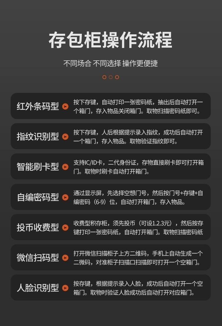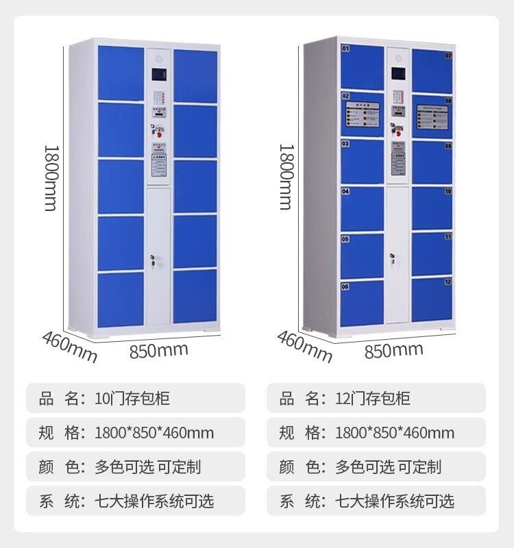 本厂产品均采用最新系统,质量有保障,一次购买,终身售后,昆明市区免费送货上门!公司专业生产各种电子存包柜:自编码型、条码型、智能刷卡型、投币收费型、高清指纹识别型; 可定制各种异形系统及柜体;材质均用优质冷轧钢板折弯激光切割,喷塑高温烤制而成,高端大气上档次,