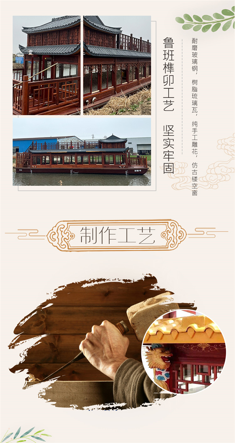 画舫船电动仿古大型观光旅游景区游览接待房屋餐饮船定制