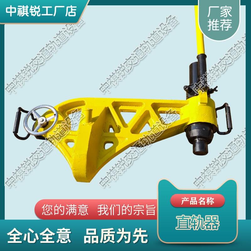 液压直轨器是一种对线路上的钢轨水平方向进行调直(或弯曲)的手动液压专用工具。该机重量轻,具有操作简单。使用时,将直轨器弯钩钩住轨头侧面,活塞顶头顶住轨头另一侧,再转动偏心手轮,将直轨器锁紧在钢轨上,此时旋紧放油阀,插入撬棍,即可进行直轨作业。作业完毕,旋松放油阀,待活塞缩回,再反向转动偏心手轮,即可将直轨器从钢轨上抬下。泵油加载前,须检查直轨器在钢轨上安装状态,直轨器要放平,弯钩底面要贴紧钢轨上顶面,弯钩及两端的偏心轮和活塞顶头须与钢轨头两侧面接触良好。泵油加载时,动作不易过快。
