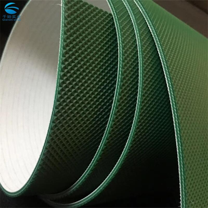 供应绿色/黑色/白色钻石花纹pvc输送带,钻石纹花纹爬坡带,防滑PVC输送带简介:钻石花纹输送带,厚度3毫米,绿色和白色蓝色三种颜色 二布二胶。
