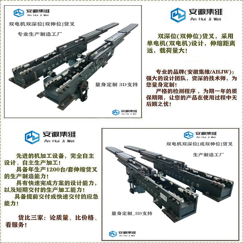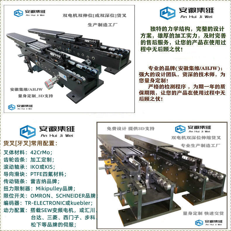 安徽集维智能装备有限公司[马鞍山市]是一家集研发、设计、生产、销售为一体的堆垛机双向自动伸缩牙叉制造厂家,拥有多位资历深厚的工程设计师和经验丰富的技术团队,全套的机加工设备,自主设计、自主生产,具备年生产1200台套的制造能力,具有快速完成方案设计的能力,以及短期交付的加工制造能力,具备提前交付或快速交付的应急能力!独到的技术优势、雄厚的加工实力、完善的服务体制,为您的产品保驾护航!