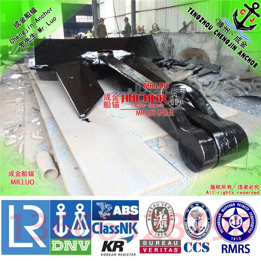 滕州成金船锚专业生产斯贝克锚,霍尔锚,海军锚,日本无杆锚,CJD-14 德尔塔大抓力锚(三角锚),CJT-20 (TW波尔)大抓力锚,CJ-17大抓力锚(MK5海工锚),丹福尔锚,我公司可提供ABS, BV, CCS, DNV, NK, GL, LR, RMRS, KR, 等普通锚证书及大爪力锚证书,欢迎订购!!