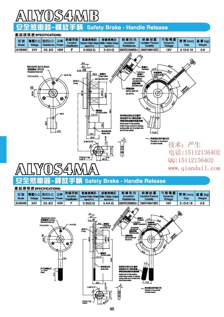 带释放手柄电动代步车电动轮椅车刹车器:ALY0S3AA,BLY0S3BB,ALY0S3EB