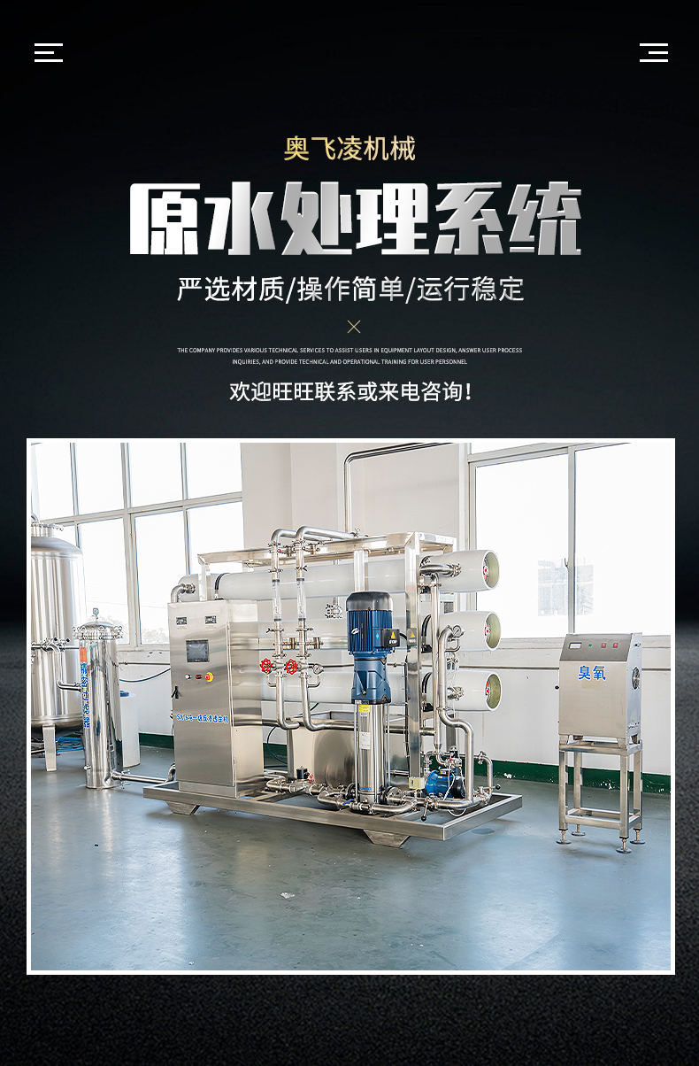 原水处理系统RO反渗透超滤设备纯净水饮用水净化设备奥飞凌定制