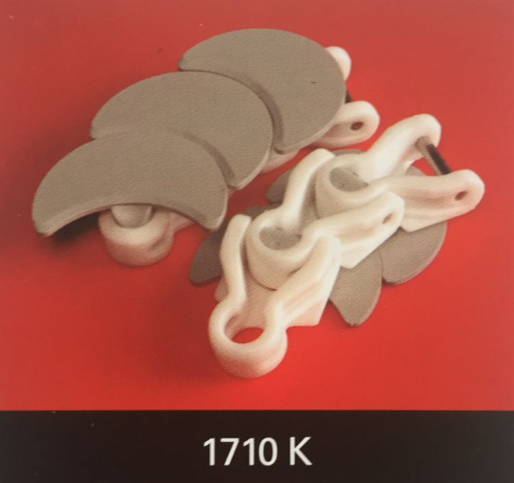 该1700龙骨铰链还可以选择装配一层硬化的金属层,即带金属附加层AC1700K。这种金属层非常适用于输送那些会损坏塑料链表面的高温零件。这些金属层赋予链条极好的耐磨寿命,使其适用于输送汽车零件或类似用途。