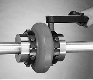 将半个莱克斯诺弹性体联轴器Omega?安装在轴套上并拧紧自锁螺栓。通过Omega?弹性体确定另外个轴套的间距,再固定那个轴套。