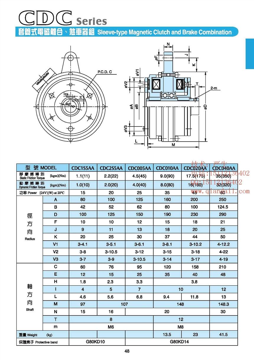 台湾仟岱套筒式电磁离合刹车器组CDC2S5AA/CDC010AA/CDC020AA/CDC020AA