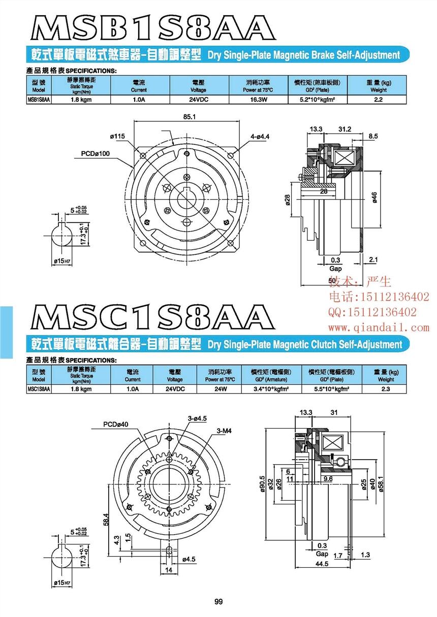 干式单板电磁离合器刹车器-自动调整型 MSC1S8AA,MSB1S8AA