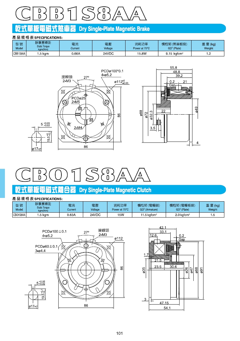 干式单板电磁离合器刹车器- CBO1S8AA,CBB1S8AA