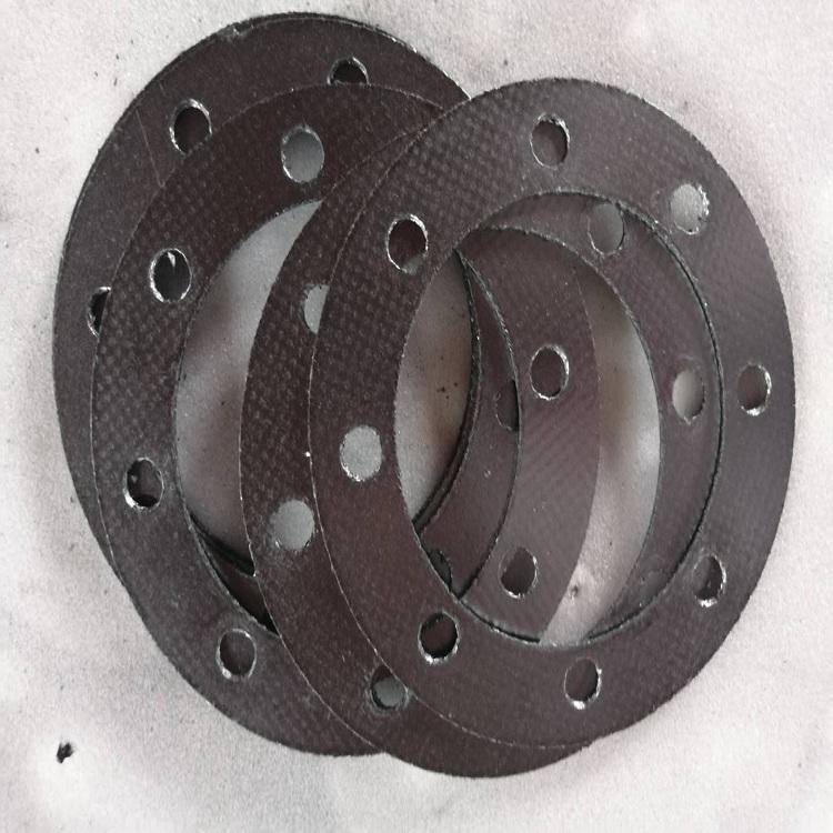 石墨复合垫片产品说明1:高强石墨金属复合密封垫片还可切成复杂的密封垫片,如水位计密封垫片冲螺拴孔法兰等。内外圈包覆金属薄片,即保持原有垫片的各项优异性能,又便于安装、拆卸,不易损坏,同时也可防止介质对垫片的侵蚀,提高了耐压。是大直径压力容器法兰密封面连接处的密封制品。各种腐蚀性化学药品流体强碱、盐酸,硫酸等强腐蚀性液体、有机溶剂、液氮等,广泛用于石油、化工、化纤、采煤、发电、冶金等工业设备所用法兰、阀门、反应釜、泵、压力容器、热交换器、冷凝器、发电机、空气压缩机、排气管、制冷机等的密封。特点:技术参数:温度:-200℃-+850