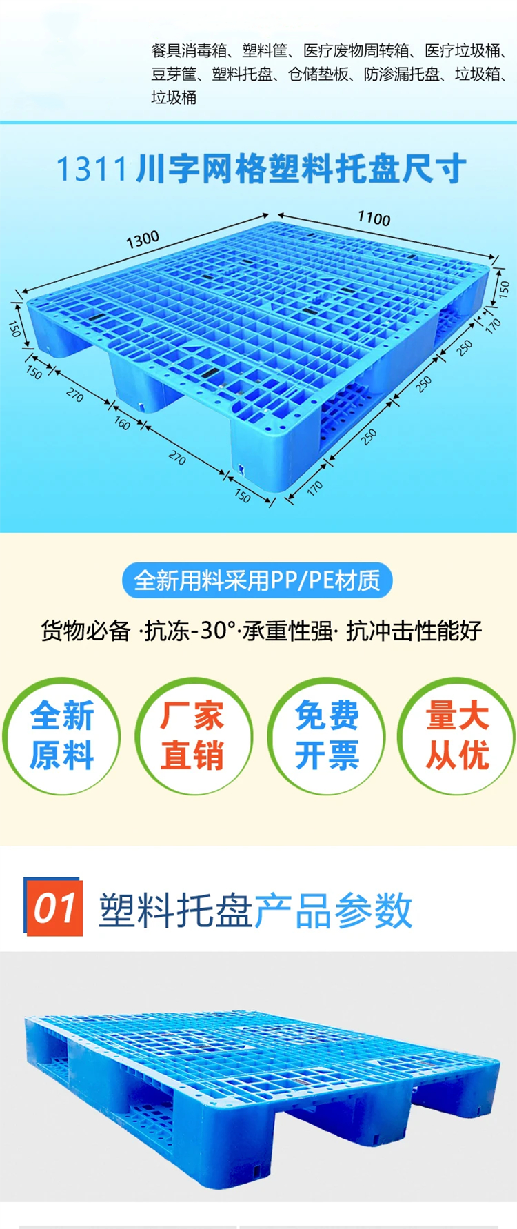 武汉地区网格川字塑料托盘1210卡板防潮垫板堆码工业仓库垫栈板