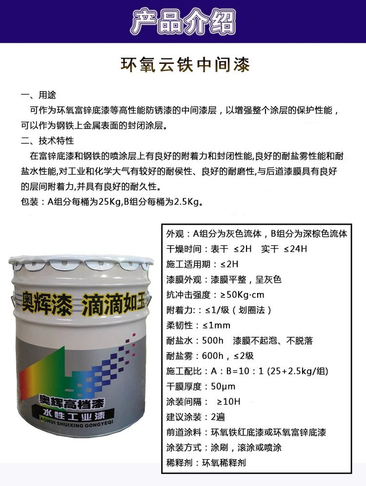 产品名称 | 环氧云铁中间漆 | ||