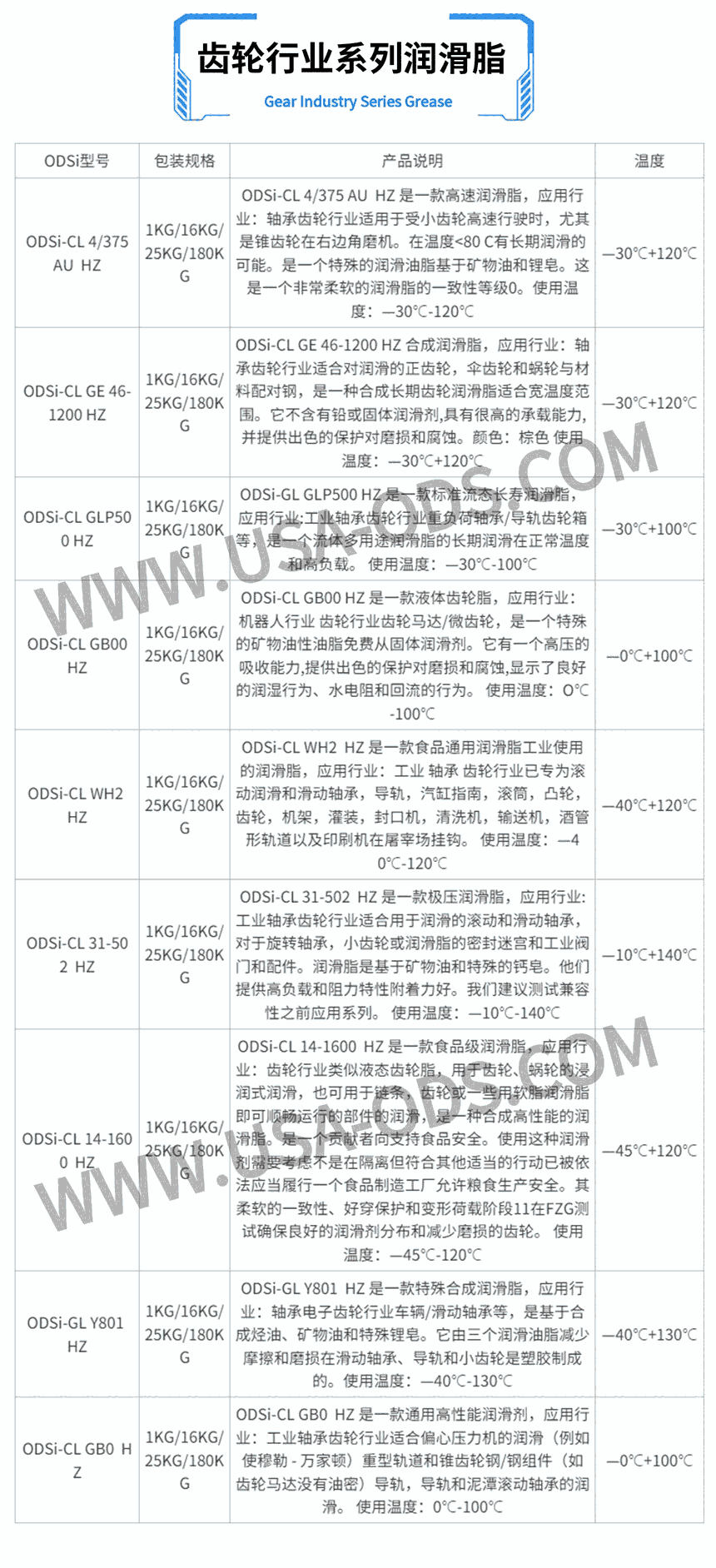 丘长木齿轮行业专业技术润滑脂 ODSi-CL WH2 HZ