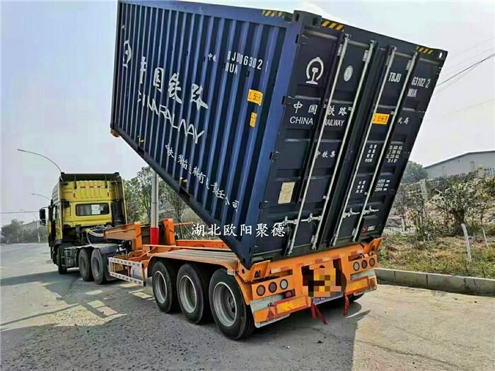 码头转运挂车,20英尺集装箱骨架后翻运输半挂车