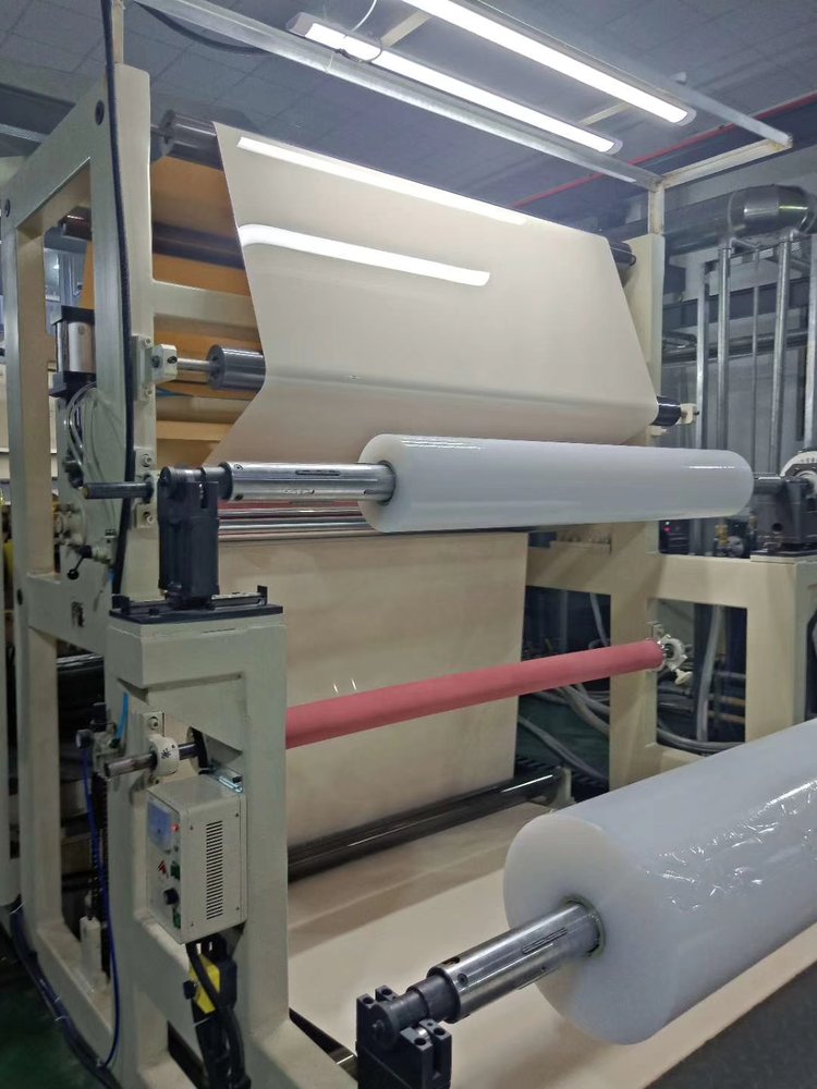 ◎采用自动翻转双工位收卷机,实现自动裁切、自动上卷、确保宽幅片材生产中的稳定生产,收卷轴采用伺服电机驱动,可实现多段张力或锥度收卷,确保收卷卷材端面整齐,张力稳定,并能够满足3英寸和6英寸气涨轴的切换;