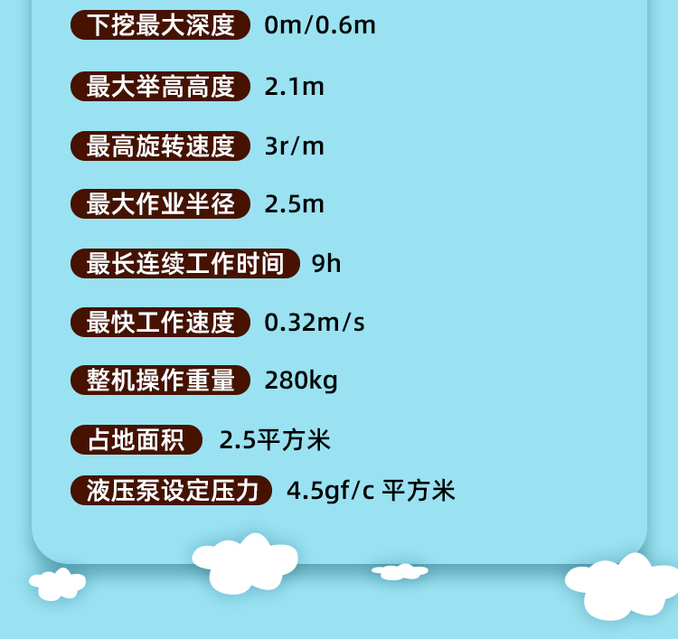 液压泵设定压力 | 4.5gf/c 平方米 | ||