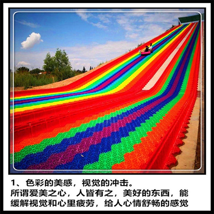 场地闲置。现在一个新的项目来啦——七彩旱雪滑道,可以因地制宜,不受场地及经营条件限制,只要有场地,均可施工经营!现广泛用于室外游乐场、景区、山坡、室内游乐场、滑雪基地、商场等地,可与公园景观、游乐场所等旅游资源结合,促成一个运动旅游商业生态体系,让整个游乐场所!网红七彩滑道是一条无比欢乐的滑道、惊险刺激的滑道。滑、滑、滑,就是要你享受这种从顶端飞流直下的。七彩旱雪滑道项目利用了物理重力、支撑力、摩擦力以及阻力、弹力的相互作用和转换的原理来完成滑行、转弯和刹车的。在滑行过程中可借助于雪圈,游客坐在雪圈上即可自然下滑,也可根据天气变化,借助于水或洗洁精等润滑剂等进行速度调节及保养。滑行途中不需要借助电力及其他动力源。